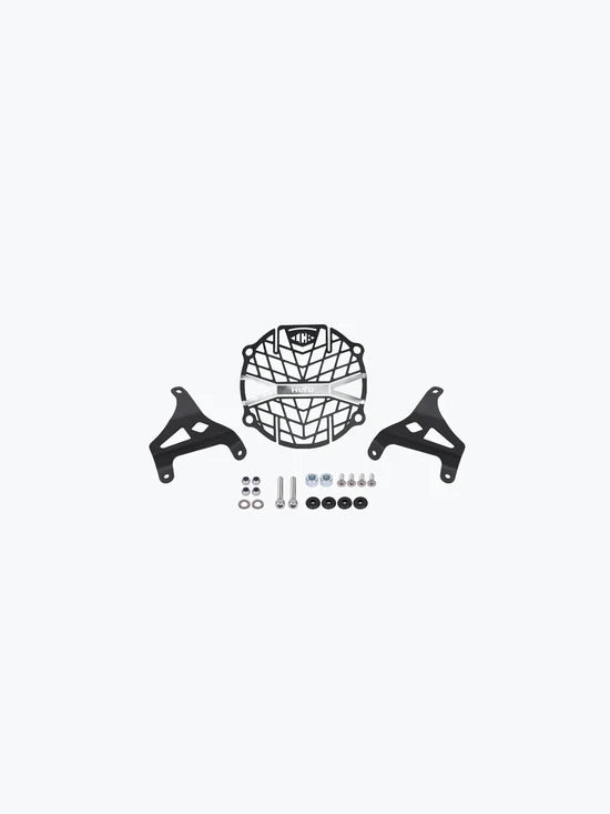 Crafted from high-grade mild steel, this grill provides a solid defense against stones, debris, and impact while maintaining clear visibility for night rides. The precision laser-cut mesh design, paired with a bold crossbar detail, enhances the motorcycle’s front profile while ensuring optimal airflow and headlight performance.