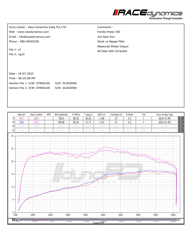 As per manufacturer intent, the N-Gage Hyper Flow Air Filter is designed to work with the stock ECU and exhaust system. No tuning or remapping is required for installation under standard riding conditions. Actual riding feel may vary depending on riding style, fuel quality, maintenance, and overall engine condition.